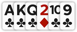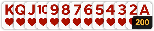 10♥ – J♥ – Q♥ – ♥K. يمكن للآص (A) أن يوضع قبل الـ 2 أو بعد الشيخ،