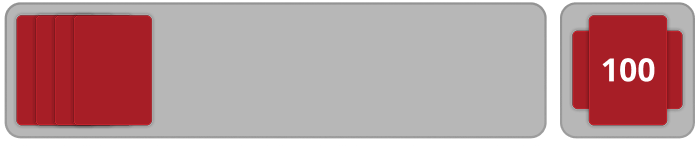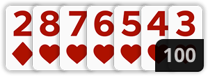 - بعد التوزيع، يتم وضع مجموعتين إضافيتين من 11 ورقة جانباً، ويُشار إليهما بـ 100 لكل واحدة أو 200 معاً. يمكن للّاعب الذي ينهي أوراقه الـ 11 الأولى بسحب كومة الـ 100 للاستمرار باللعب.