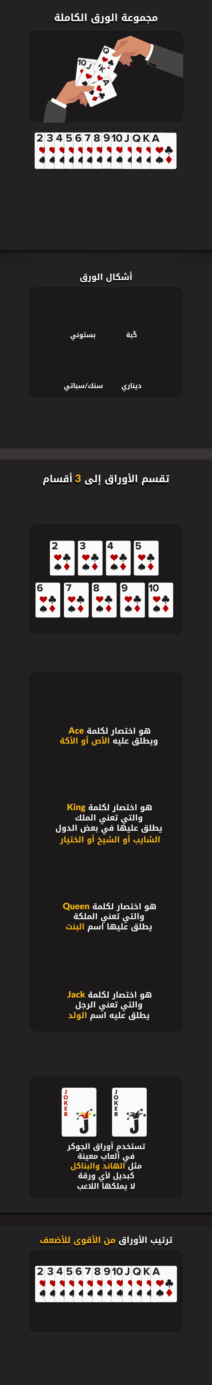 هناك الكثير من الأشخاص الذين يحبون ألعاب الورق و يرغبون في مشاركة أصدقائهم في اللعب، ولكن نتيجة عدم معرفتهم للأساسيات يبقون خارج اللعبة ، لذا نحن هنا للمساعدة .