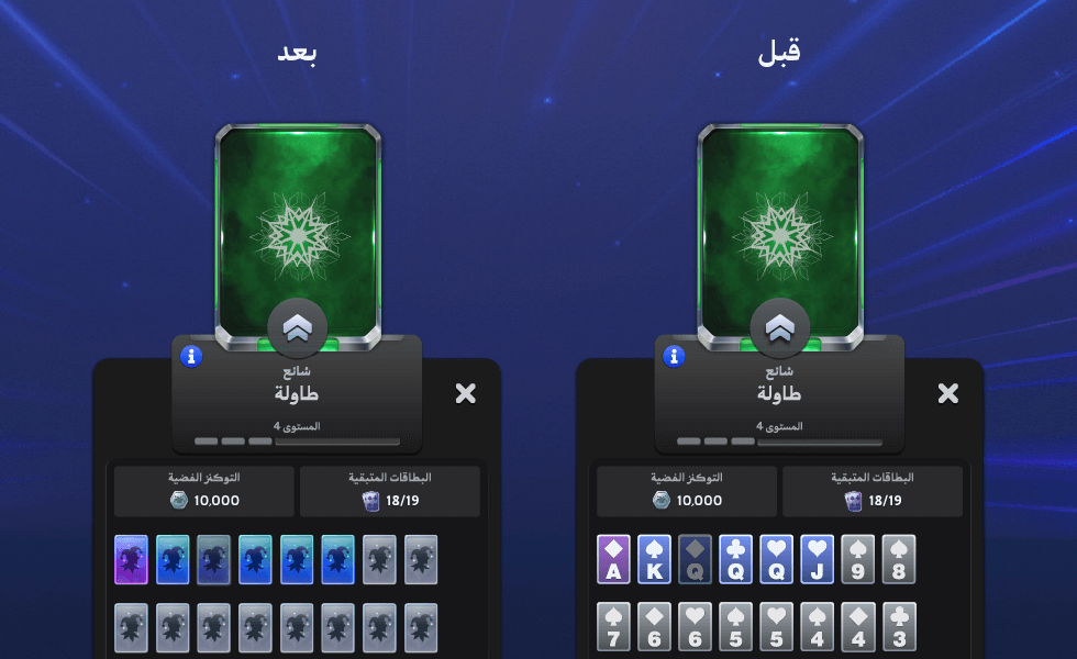 لن تخسر أي بطاقة. سيتم ترحيلها تلقائيًا إلى النظام الجديد من خلال تعويضك بالكامل ببطاقات الجوكر وقطع الفضة، مما سيساعدك على ترقية مقتنياتك بطريقة أسرع وأسهل.