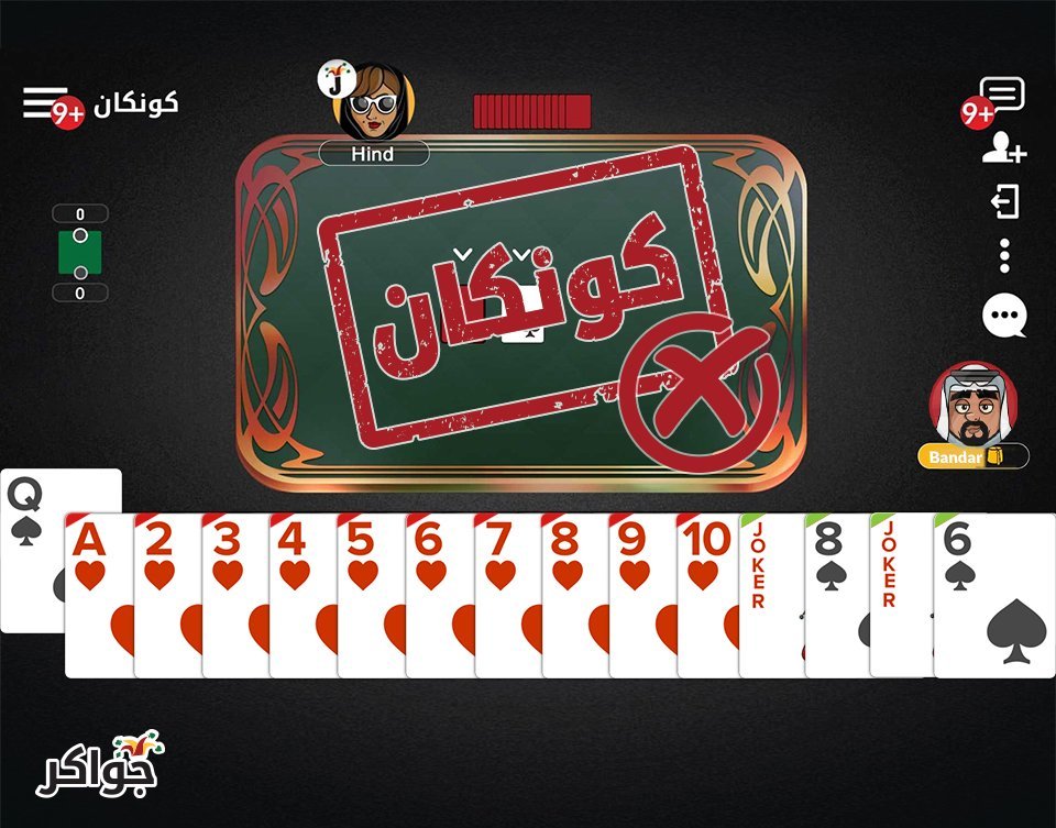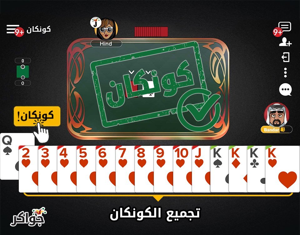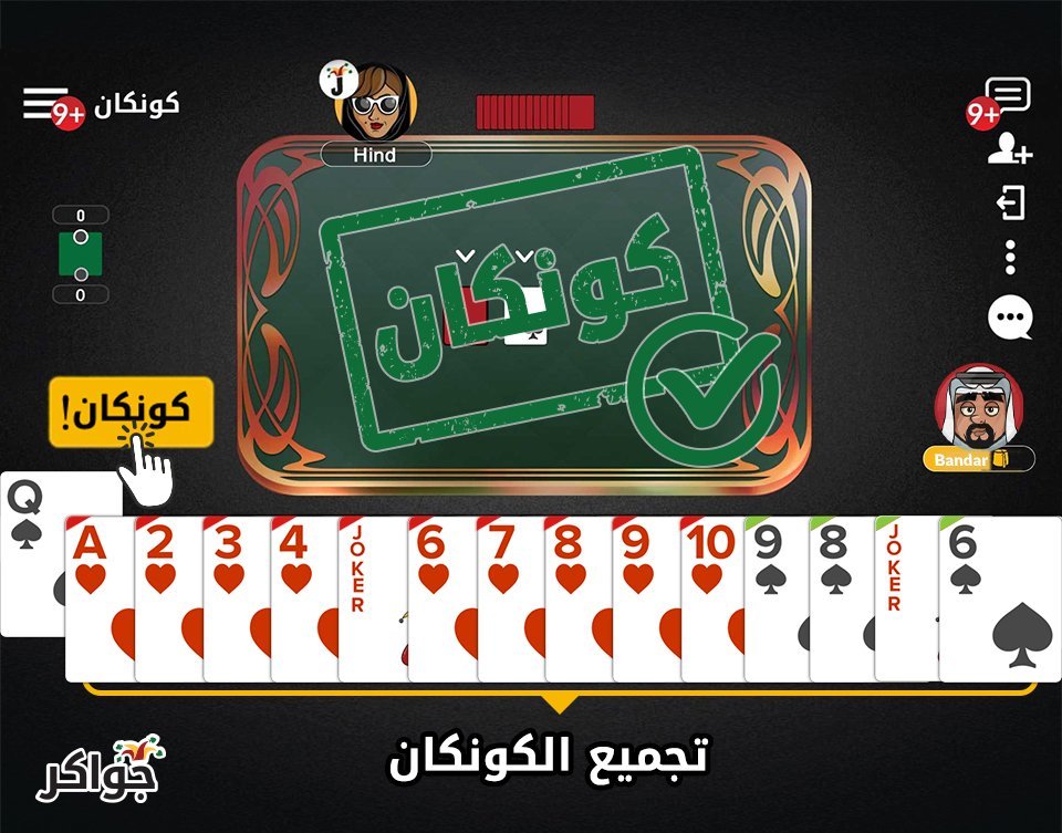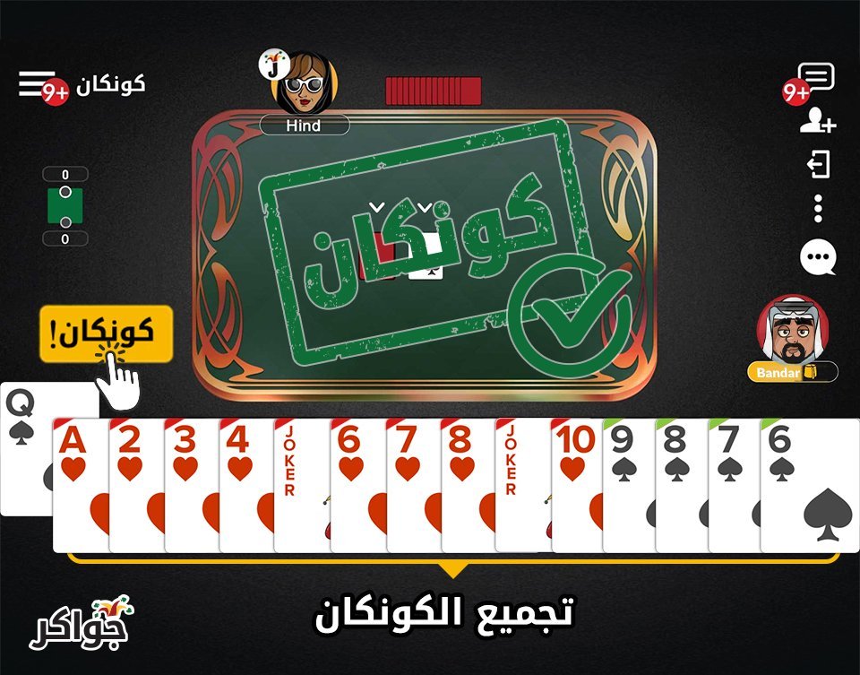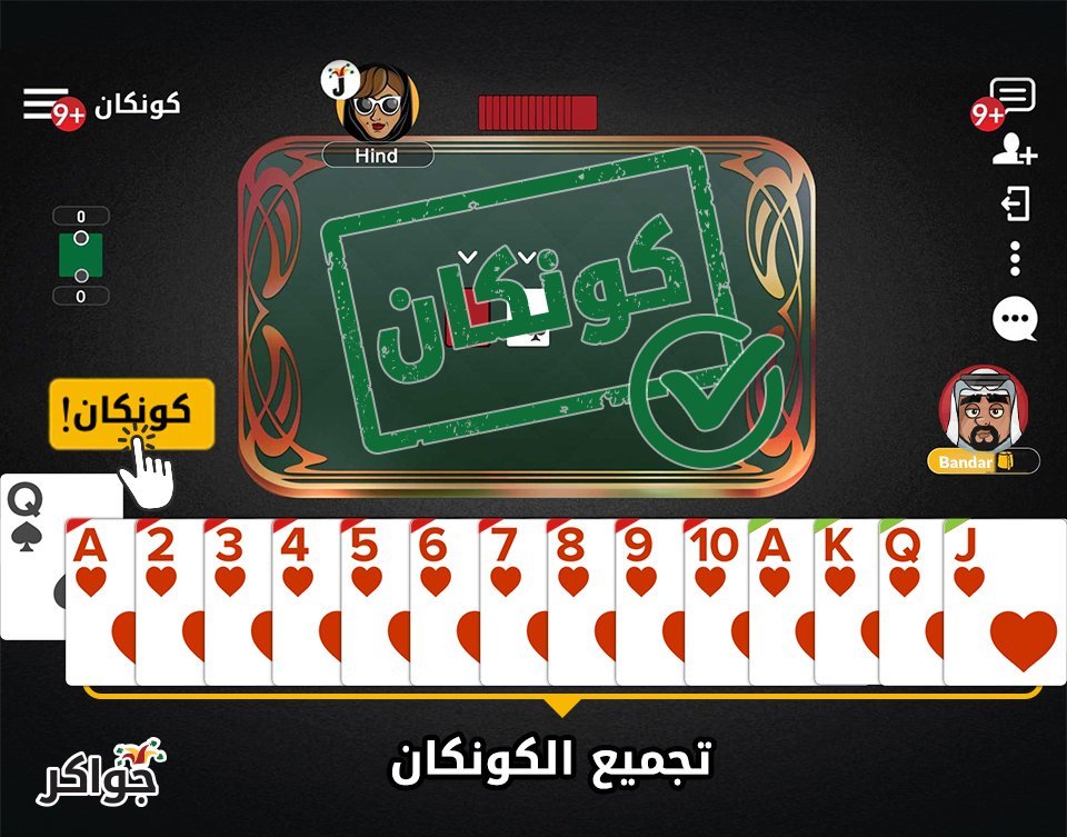 - تظهر شارة الكونكان في التطبيق كما في الشكل أدناه عند تجميع الأوراق التالية “عشر أوراق متسلسلة و بير رباعي”.