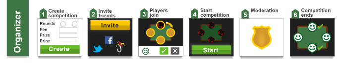 - The competition organizer will get points once the competition ends, starting the competition in less time, the amount of entry fee and prize, existence of winners and taking the correct action will be things that affect the rating system.