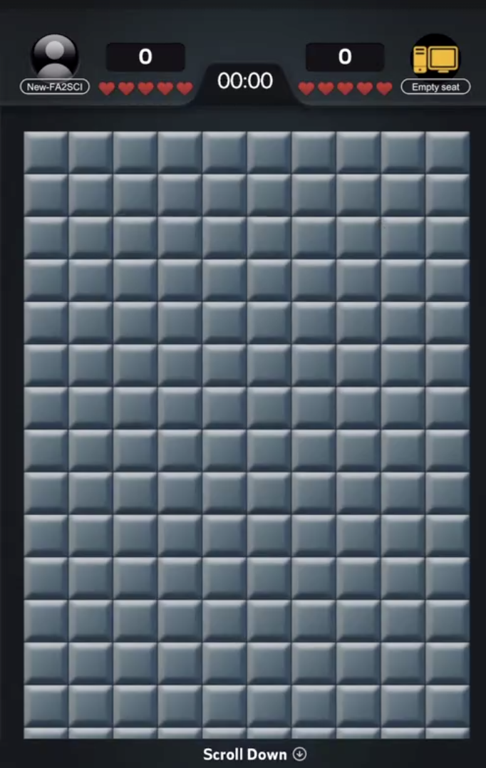 - Each player starts off with 3 lives and an empty scoreboard. Their points are collected based on how many blocks they have revealed, and how many lives they have used.