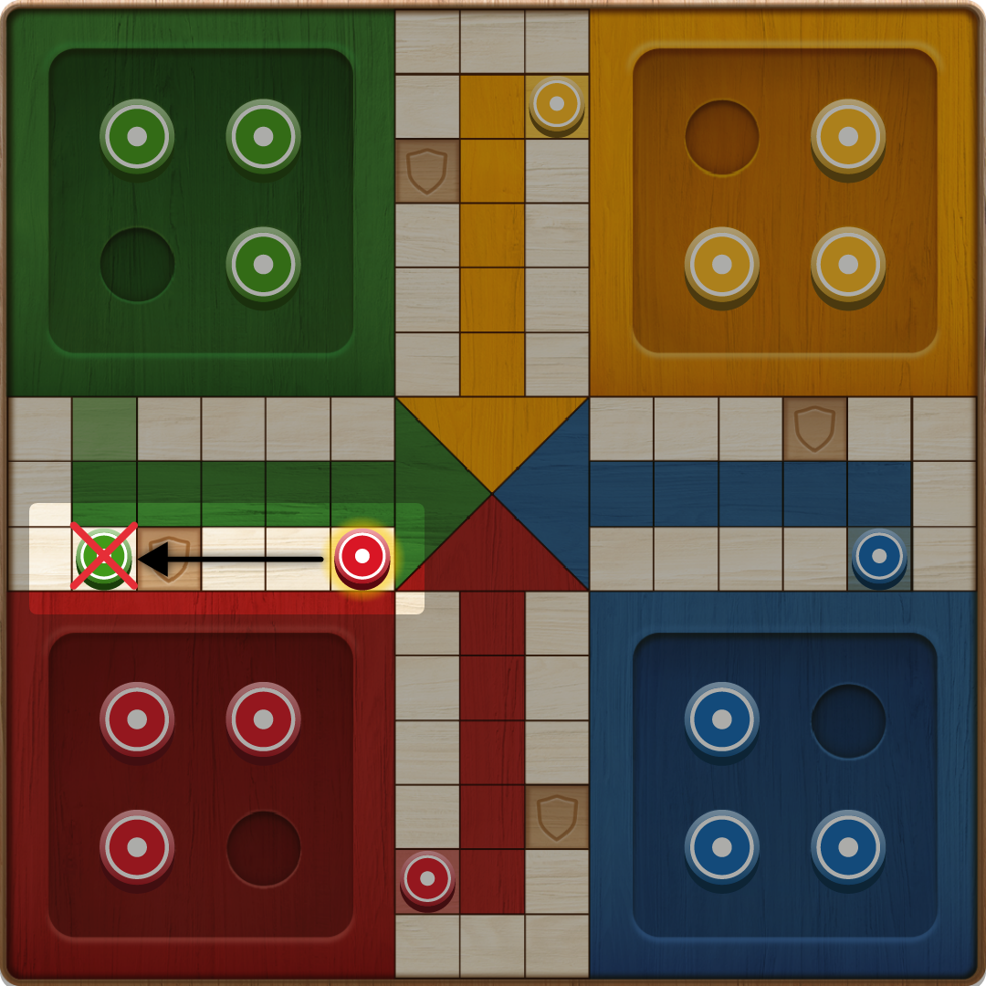 عند تحريك الأحجار الخاصة بك والوقوف عند نفس الرقعة التي تحتوي على أي قطعة حجر من أحجار الخصم يتم الإطاحة بأحجار الخصم وإعادتها الى نقطة البداية.