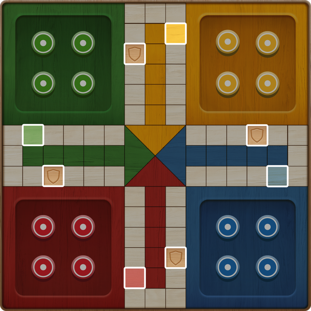 للفوز في اللعبة يجب على كل لاعب إدراج جميع الأحجار الأربعة داخل المنطقة الخاصة الموضحة أدناه. يجب التنويه هنا الى أن دخول أي حجر الى المنطقة الخاصة يفرض على اللاعب الحصول على نفس عدد الرقع المتبقية فمثلا في الشكل أدناه لا يمكن للاعب تحريك الحجر الأحمر عند الحصول على الرقم خمسة من النرد.