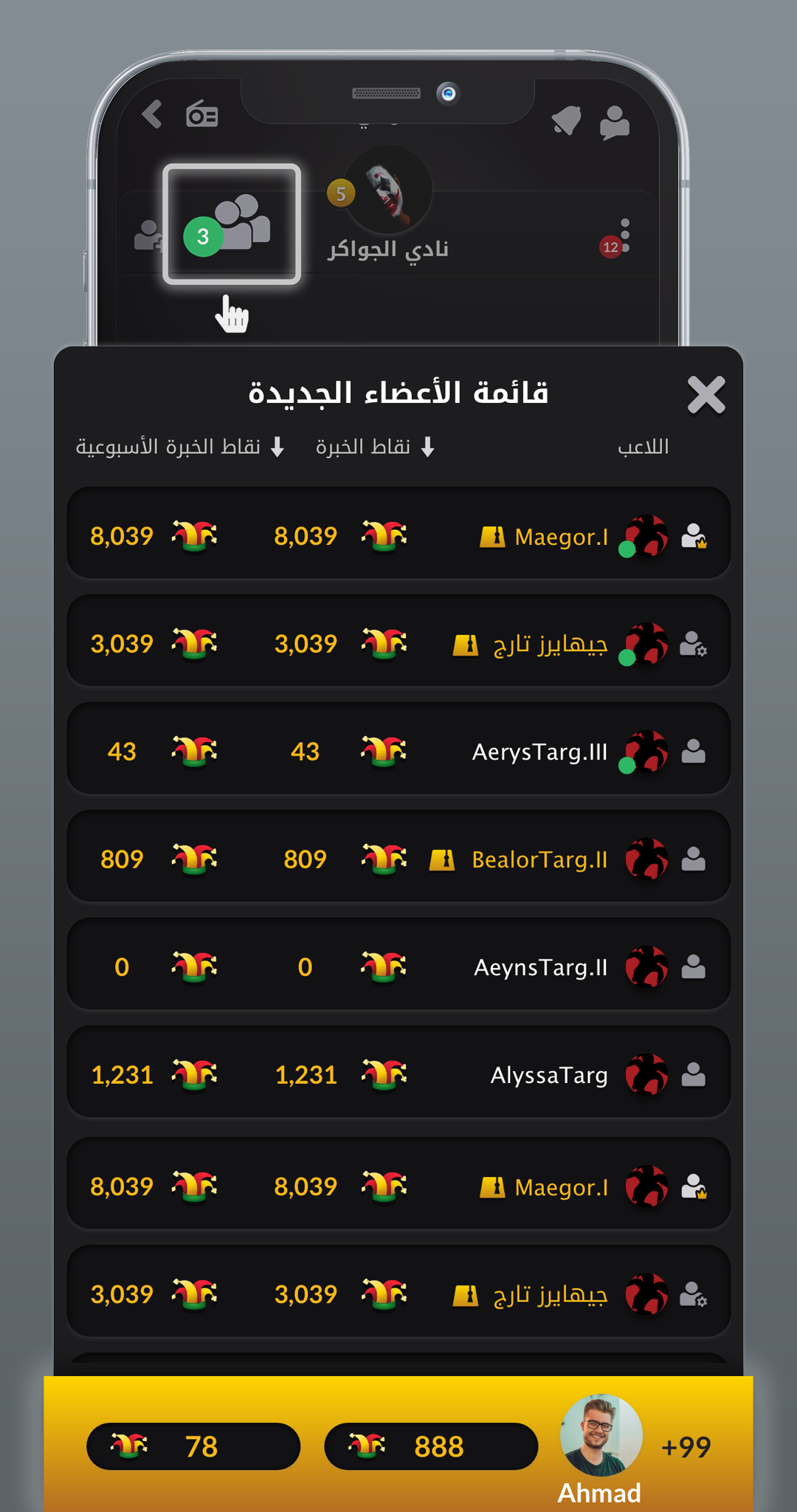 - امكانية الوصول لقائمة أعضاء النادي وعرض نقاطك ونقاطهم الأسبوعية بالإضافة إلى عرض الأعضاء المتصلين باللعبة.